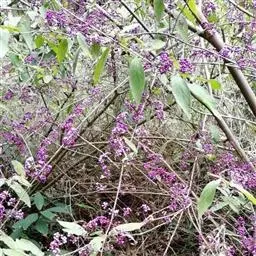 紫珠是唇形科、紫珠属落叶灌木,高约2米;叶片卵状长椭圆形至椭圆形,顶端长渐尖至短尖,基部楔形,…