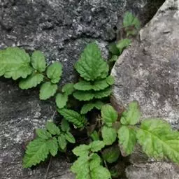 凉粉草为唇形科植物,茎下部伏地,上部直立, 叶卵形或卵状长圆形,先端稍钝,基部渐收缩成柄,边缘有小…