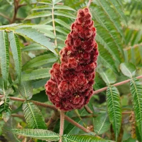 火炬树是漆树科盐麸木属落叶灌木或小乔木;株高,树形不整齐;小枝粗壮,红褐色,密生绒毛;叶轴无翅,…