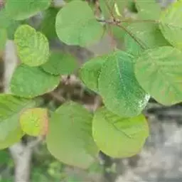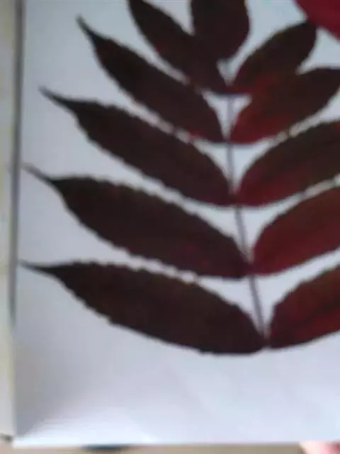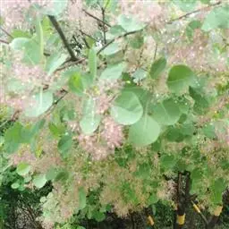 粉背黄栌叶卵圆形,较大,长3.5-10厘米,宽2.5-7.5厘米,无毛,但叶背显著被白粉;叶柄较长,…