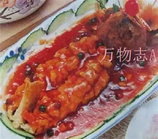 不同的是,古代的“松鼠鱼”是挂的蛋黄糊,而今天的“松鼠鱼”是拍干淀粉。古代的“松鼠鱼”是在炸后加“油、酱油烧”成的,今天则在炸好后直接将制好的卤汁浇上去的。此外,今天的“松鼠鱼”在造型上更为逼真,其味酸甜可口,这些都是古代的“松鼠鱼”所难以比拟的。