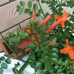 炮仗藤 Miers)紫葳科炮仗藤属藤本植物。小枝顶端有丝状卷须;叶对生,卵形;花萼钟状,橙红色,…