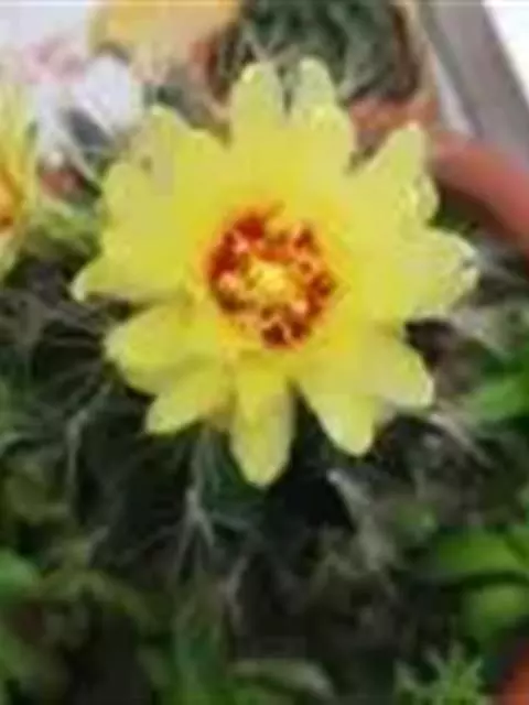绯花玉 Speg.)是仙人掌科、裸萼球属多肉植物,植株呈扁球形,表皮墨绿色,刺针状,…
