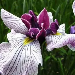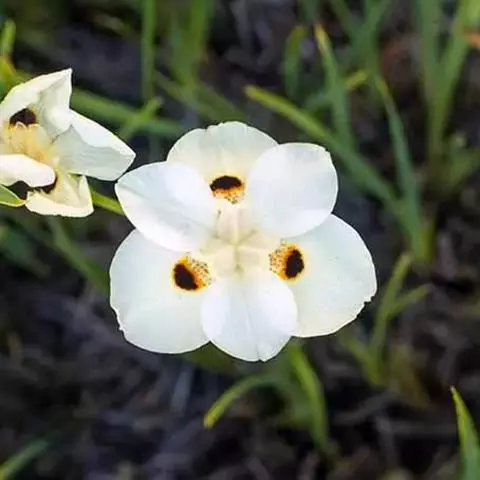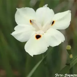 双色野鸢尾为多年生草本植物,叶子呈剑状淡绿色。…