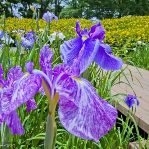 花菖蒲:是玉蝉花的变种。多年生宿根挺水型水生花卉。根状茎短而粗,须根多并有纤维状枯叶梢,叶基生,线…