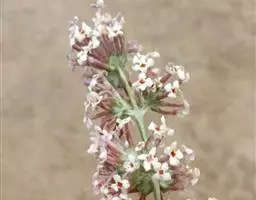 穗状聚伞花序顶生,长4-40厘米,宽2-4厘米;苞片线形,长达10毫米;小苞片线状披针形,长2-3.5毫米;花紫色,芳香;花萼钟状,长约4毫米,外面与花冠外面同被星状毛和小鳞片,内面无毛,花萼裂片宽三角形,长和宽约1毫米;花冠长13-20毫米,内面被柔毛,花冠管弯曲,长11-17毫米,上部直径2.5-4毫米,下部直径1-1.5毫米,花冠裂片阔卵形或近圆形,长约3.5毫米,宽约3毫米;雄蕊着生于花冠管下部或近基部,花丝极短,花药卵形,顶端具尖头,基部耳状;子房卵形,长1.5-2.2毫米,直径1-1.5毫米,无毛,花柱长0.5-1毫米,柱头卵圆形,长约1.5毫米。