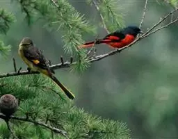 赤红山椒鸟为山椒鸟科山椒鸟属的鸟类,俗名红十字鸟、朱红山椒鸟。雄鸟红色,雌鸟黄色。…