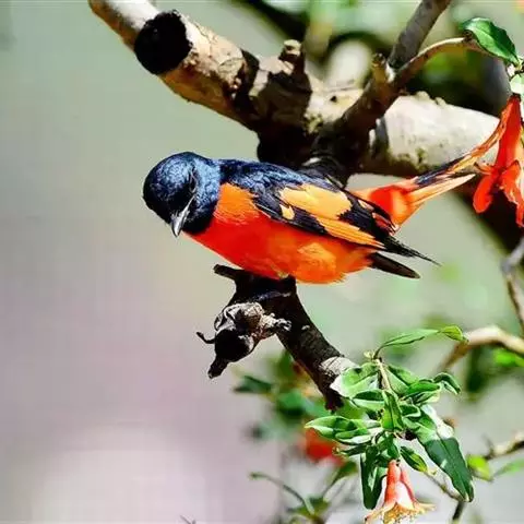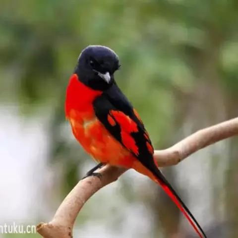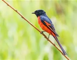 灰喉山椒鸟:共有8个亚种。体长18-22厘米。雄鸟头部和背亮黑色,腰、尾上覆羽和下体朱红色,…