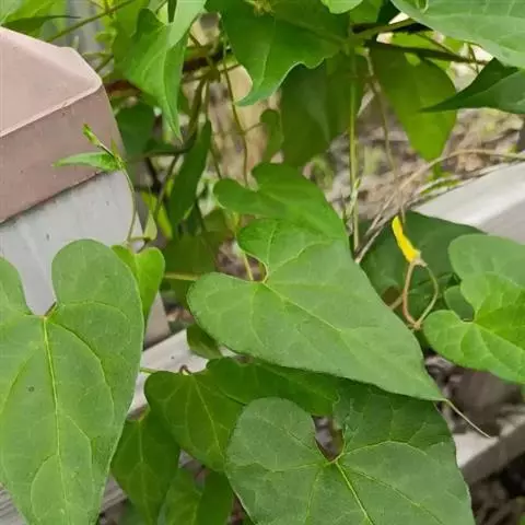 直立草本,基部分枝甚多;根须状;茎干后中空,被单列柔毛。叶薄膜质,广卵形,长4-5厘米,宽1.5-4厘米,顶端急尖,基部近心形,在脉上近无毛或仅被微毛,有边毛;侧脉约5对。伞形聚伞花序,近顶部互生,着花8-10朵;花黄色,长和直径约3毫米;花萼裂片披针形,急尖,近无毛;花冠辐状,无毛,裂片卵状长圆形,钝头;副花冠较厚,裂片三角形,短急尖;花药在顶端具1圆形的膜片;花粉块每室1个,下垂,花粉块柄短,近平行,着粉腺近椭圆形;柱头扁平。蓇葖双生,稀单生,狭披针形,向端部长渐尖,长6厘米,直径5毫米。花期5-7月,果期7-10月。