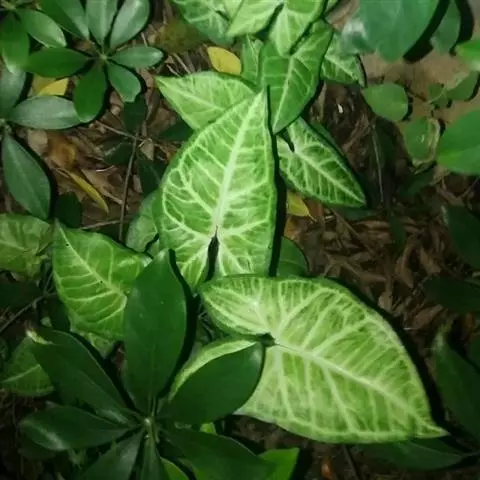 黛粉芋 Schott)是天南星科黛粉芋属植物,茎上升,上部直立;叶柄具鞘,绿色,具白色条状斑纹,…
