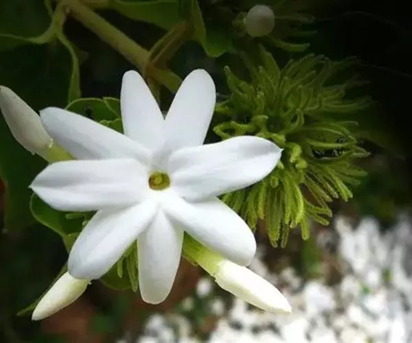 素馨花,木犀科素馨属多年生的攀援灌木植物。攀援灌木,小枝圆柱形,具棱或沟;叶对生,叶轴常具窄翼,…
