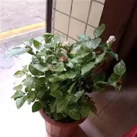 一、盆体 盆体主要为塑料盆,茉莉花成活率达90%。使用瓦盆成活率约为80%,其生长势没有塑料盆植株旺盛,叶片较小,不耐干旱,基本每天浇水。分析原因,由于瓦盆为灰黑色,在阳光直射下容易吸热,在晴天正午时,瓦盆盆体比塑料盆要高出5℃左右,而其盆中土壤温度也要高出3~4℃。因而在露天种植时,以白色、不吸热的塑料盆为好。 二、覆盖遮阳 在茉莉花的发芽期间(5月底)要覆盖遮阳网。阳光直射容易干旱、枝条易散失水分,对新芽萌动有较大影响。因此,在种植初期,以覆盖遮阳网、保持湿度,有利于芽的快速萌动。 在茉莉花的生长期(6月底)不覆盖遮阳网。茉莉花为喜光植物,因此在茉莉花的生长期,加强光照有利于它的生长、壮大。 三、修枝 茉莉花能形成多批多量的花朵,主要以打头,促发侧枝为主,可以1个枝头分为2个枝头,2个枝头分为4个枝头,进行多枝条开花。6月25日前后打头,打掉嫩枝,只保留基部2~3层叶,5~6厘米,进行正常肥水管理,25~30天开花。茉莉花为喜光植物,在相同的管理方式下,温度较高,阳光较强,有利于茉莉花进行营养生长和生殖生长。 四、施肥 茉莉花从打头到发侧芽,开花,在自然环境下,需30~40天的时间,而合理施肥则可提前5~10天开花,而且叶色深、花朵较大。进行两次追肥,8月5日追花多多生长肥(氮-磷-钾:30-10-10,1000倍液)1次,8月15日追花多多开花肥(氮-磷-钾:10-20-30,800倍液)1次。追肥后茉莉花生长势较好,叶片大而厚,深绿色。 五、温度管理 茉莉花对温度较敏感,喜温热湿润气候且能耐较高气温,怕低温,抗旱能力差。茉莉花园内的盆栽茉莉花应于11月初全部进入联栋大棚,大棚内需设小拱棚,覆盖草帘,白天正常通风散湿,夜晚一般无需加温,但在室外低温达-5℃以上的时期,应在大棚内烧水,蒸汽加温,使棚内温度不低于0℃。