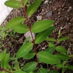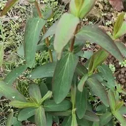 赶山鞭又名:乌腺金丝桃。多年生直立草本,高30-60cm,上部多分枝。茎圆柱形,两侧有凸起的纵肋各1条,并散生黑色腺或黑点。单叶对生;无柄;叶片卵形、长圆状卵形或卵状长圆形,长1-3.5,宽0.3-1cm,先端钝,基部渐狭而多少抱茎,两面及边缘散生黑色腺点,下面无乳头状突起。花多数,成顶生圆锥状花序或聚伞花序;萼片5,卵形,先端急尖,表面及边缘有黑色腺点;花瓣5,淡黄色,不等边形,旋转状排列,沿表面及边缘有稀疏的黑色腺点;雄蕊多数,连合成3束,花药上有黑色腺点;子房上位,3室,花柱3,分离。蒴果卵圆状长椭圆形,室间开裂。花期7-8月,果期9-11月。