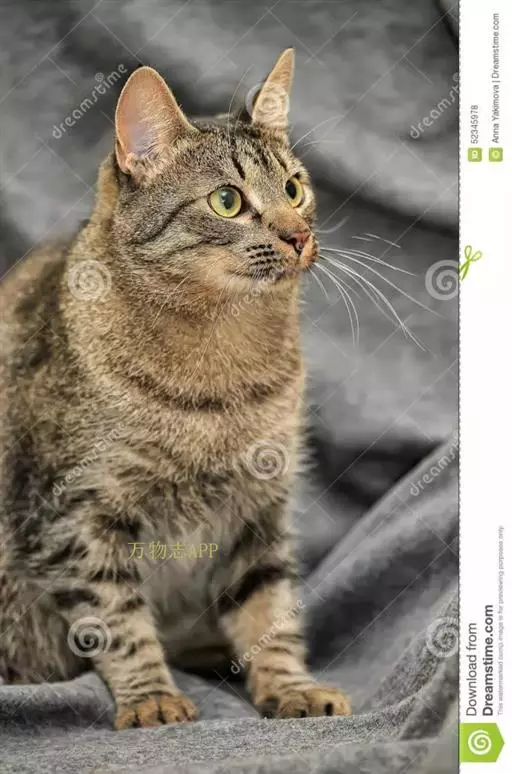 22、耳朵竖著,没有特别朝向何处--一只平常,放松,又有点机警的虎斑猫。