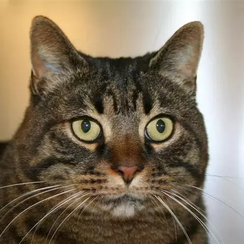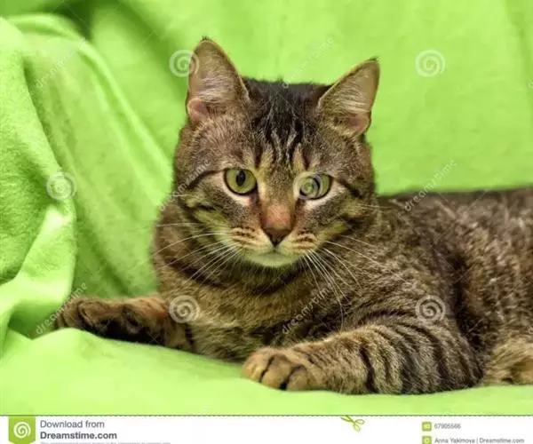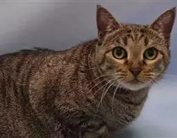 虎斑猫,原产美国。黄棕色的底色,夹有纯黑色的斑纹图案,且有一圈较浅的铜色呈环状包围。虎斑猫头部圆润,两耳间距较近,颈略短,肌肉发达。眼睛大而明亮,呈圆杏核状,颜色可以接受由黄色、金色至绿色,通常有眼线。鼻子是砖红色,有鼻线。毛型短而厚、质地生硬。个性独立、活泼、机警。捕鼠能力强。