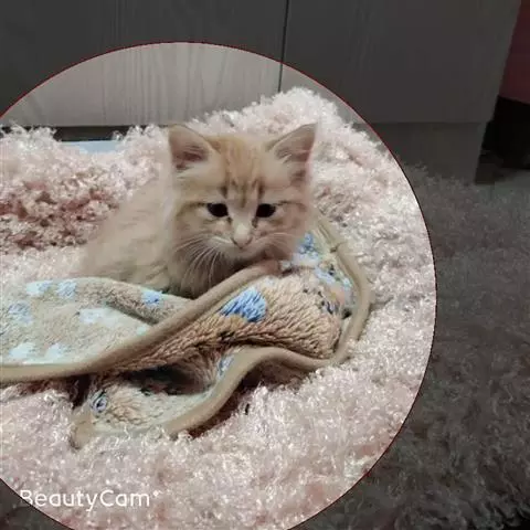 CREAM CAMEO TABBY (更淡的Cameo): 底毛为白色,其他总体为灰白色,奶油色的斑纹,鼻子与爪垫为粉色,眼睛颜色为亮金色。