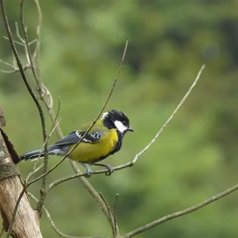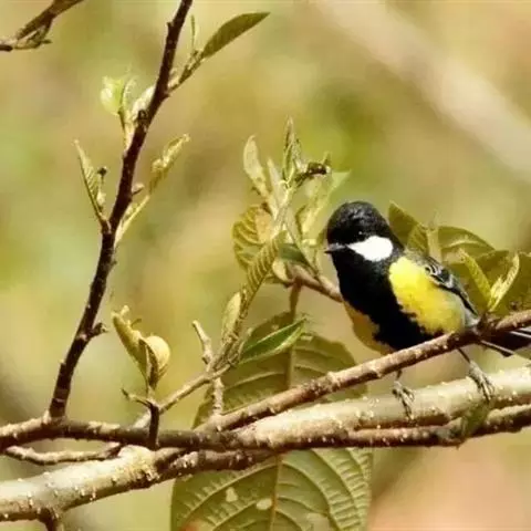 相似种绿背山雀体型较大,腹有宽的黑色纵带,野外容易识别。