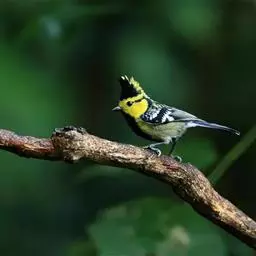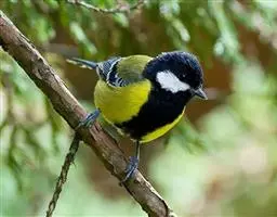 黄颊山雀是雀形目山雀科山雀属鸟类。雄鸟额、头顶和羽冠为具有光泽的黑色;额基、眼先、眉纹、脸颊和耳羽等头颈侧为鲜艳的明黄色;贯眼纹黑色;后颈亦具一黄斑;上体灰黄绿色,羽缘黑色;尾羽黑色具蓝灰色羽缘,基部白色;下体颏、喉至上胸为富有金属光泽的黑色;胸下有一黑色宽中央纵纹,一直延伸至肛周;其余下体白色;胸侧和两胁染黄色或蓝灰色;虹膜暗褐色;喙黑色;脚铅蓝灰色至铅黑色。雌鸟似雄鸟,但上体光泽较弱,胸腹部黑色纵带不明显。黄颊山雀分布于亚洲东南部地区,在中国分布于华中、华南和西南等地。栖息于中低山常绿阔叶林、针叶林和混交林中,也见于山麓疏林灌丛草坡或茶园、果园等地。常成对或小群活动,也和大山雀等其他小型鸟类混群,活跃地在乔灌木枝叶间飞翔跳跃。主食鳞翅目和鞘翅目等昆虫,兼食植物种实。繁殖期在4-6月,营巢于树洞、岩隙或墙缝中。窝卵数为3-7枚,卵灰白色且有红褐斑,雏鸟晚成。黄颊山雀被列入中国林业局200
