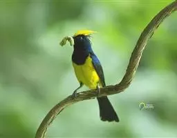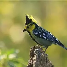 台湾黄山雀体长约13厘米。头顶至后颈黑色,有一长的黑色羽冠,羽冠末端和后颈中央白色。背苍绿色,…