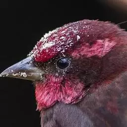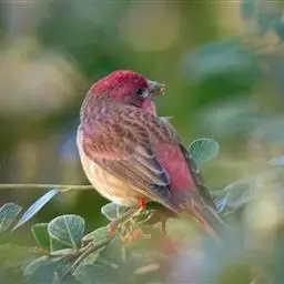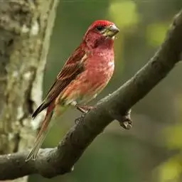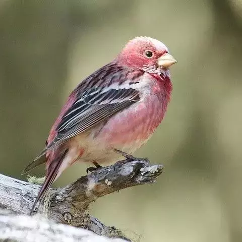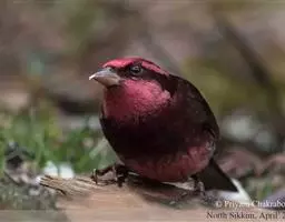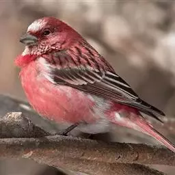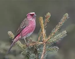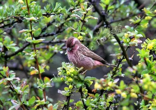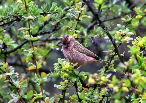 藏朱雀:全长约17-18厘米。雄鸟头部深红色具光辉,喉部暗红色具白色点斑;背部灰白色,各羽具玫瑰红…