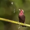 酒红朱雀小型鸟类,体长13~15厘米。雄鸟通体深红色,头部深朱红或棕红色,下背和腰玫瑰红色,…