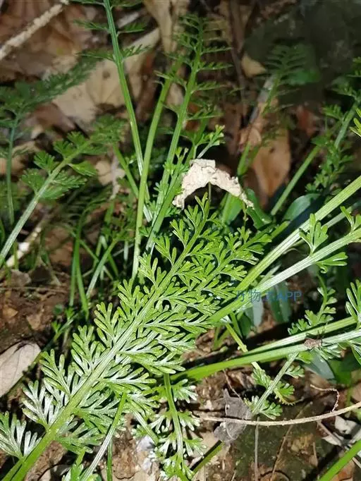 孢子囊群狭线形,长2.5-5毫米,深棕色,每小羽片或裂片1枚,位于小羽片的中部上侧边;囊群盖狭线形,灰绿色,膜质,全缘,开向叶边,宿存 。