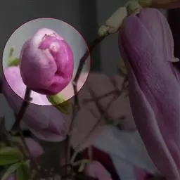 花2-4朵,生茎顶端及叶腋,有时仅顶端一朵开放,而叶腋有发育不好的花芽,直径4.2-10厘米;苞片2-3,分裂或不裂,披针形,大小不等;萼片4,宽卵形,长1.7厘米,宽1-1.4厘米;花瓣6-9,倒卵形,长3-4厘米,宽1.5-3厘米,紫红色或粉红色;花丝长5-10毫米;花盘肉质,仅包裹心皮基部;心皮2-3(-5),密生黄色绒毛。蓇葖长1-2厘米,密生黄色绒毛。花期5-6月,果期7月。