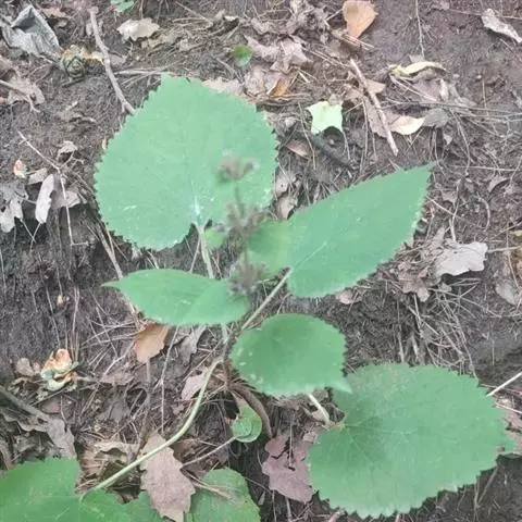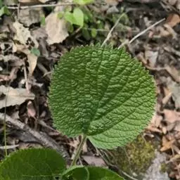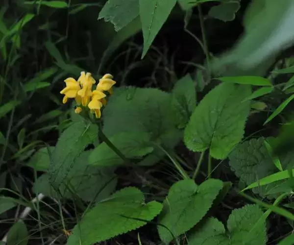 多年生草本,高15-45cm。茎直立,四棱形,疏被倒向短硬毛。茎生叶对生;叶柄长1.5-10cm;叶片卵圆形、卵形或卵状长圆形,长5-17.5cm,宽4.2-11cm,先端急尖或钝,基部心形或浅心形,边缘具深圆齿,上面被短纤毛,下面沿脉上被具节疏柔毛。苞叶卵形至卵状披针形,超过花序;叶柄长不及1cm。轮伞花序多花,1-2个生于主茎顶部;苞片线状钻形,较萼为短,边缘密被具节缘毛;花萼管状钟形,长1.8-2.8cm,外面被具节疏柔毛,具5齿,萼齿先端微凹,具小刺尖,齿间小齿先端微凹,边缘被微柔毛;花冠淡黄色,长3.7-5cm,唇形,外面疏被短柔毛,内面无毛环,上唇边缘具小齿,下唇较大,外面被短柔毛,3圆齿,中裂片较大,圆卵形,边缘为不整齐的波状,侧裂片三角形;雄蕊4,二强,前对较长,花丝具长毛,无附属物;雌蕊子房2,合生,花柱单一,柱头2裂。小坚果无毛。花期6-7月,果期8-11月。