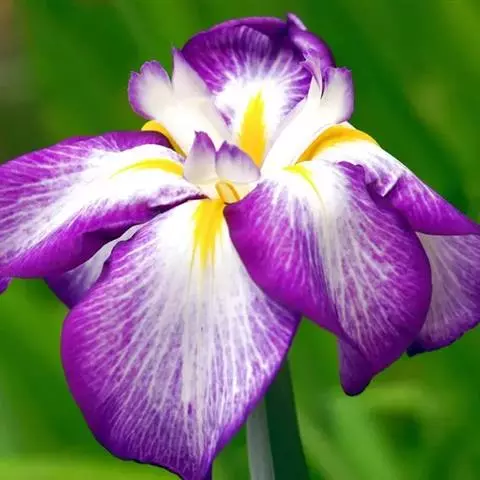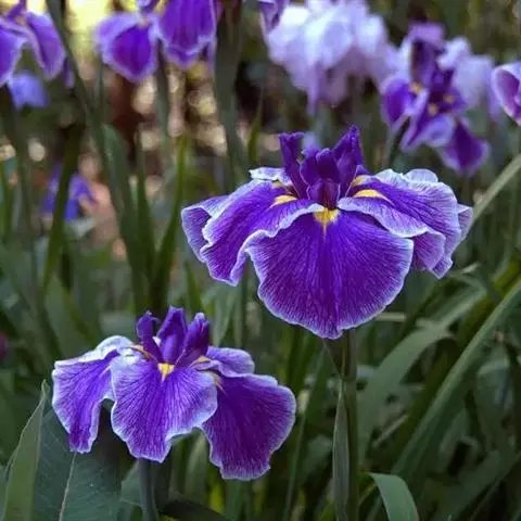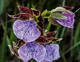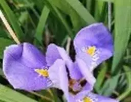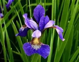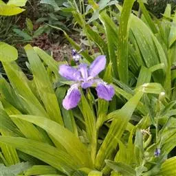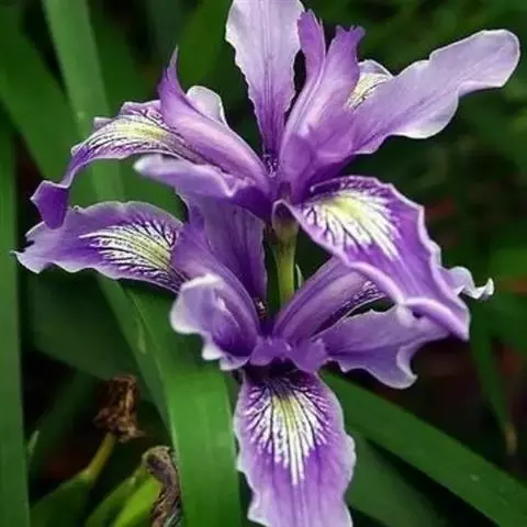 双色野鸢尾为多年生草本植物,叶子呈剑状淡绿色。…