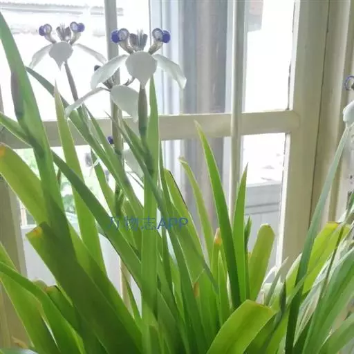 亮叶鸢尾为常绿多年生草本植物。叶面光滑、亮绿色,花茎扁平叶状。原产于巴西。