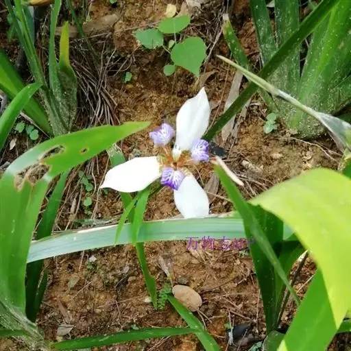 大扁竹兰扇形鸢尾,多年生草本,根茎横生,粗壮,黄白色,节明显;叶黄绿色,集生茎顶,叶片宽剑形,花蓝…