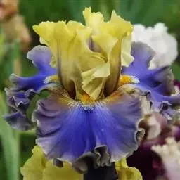德国鸢尾,为鸢尾科鸢尾属的植物。根状茎粗壮,扁圆形,有环纹;叶绿色灰绿色,堂具白粉,…