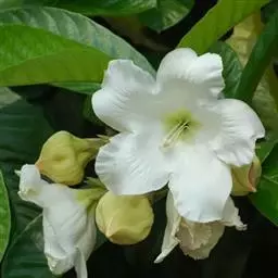 清明花是夹竹桃科、清明花属常绿高大藤本,叶长圆状或倒卵形;聚伞花序顶生,着花3-5朵,有时更多;花大,…