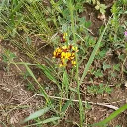 花序小头状,具花10-20朵;总花梗细,挺直,比叶长,密被贴伏柔毛;苞片刺毛状,甚小;花长2-2.2毫米;花梗短,长不到1毫米;萼钟形,长约2毫米,密被毛,萼齿线状披针形,稍不等长,比萼筒略长或等长;花冠黄色,旗瓣近圆形,顶端微凹,冀瓣和龙骨瓣近等长,均比旗瓣短:子房阔卵形,被毛,花柱弯曲,胚珠1粒。荚果肾形,长3毫米,宽2毫米,表面具同心弧形脉纹,被稀疏毛,熟时变黑;有种子1粒。种子卵形,褐色,平滑。花期7-9月,果期8-10月。