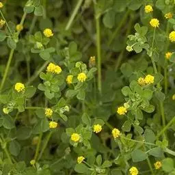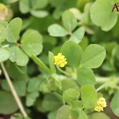 天蓝苜蓿(学名:Medicago lupulina L.)是豆科,苜蓿属多年生草本植物。高可达60厘米,全株被柔毛或有腺毛。主根浅,须根发达。茎平卧或上升,多分枝,叶茂盛。羽状三出复叶;托叶卵状披针形;小叶倒卵形、阔倒卵形或倒心形。花序小头状,总花梗细,挺直,比叶长,密被贴伏柔毛;苞片刺毛状,甚小;花冠黄色,旗瓣近圆形。荚果肾形,表面具同心弧形脉纹,被稀疏毛,熟时变黑;有种子1粒。种子卵形,褐色,平滑。7-9月开花,8-10月结果。