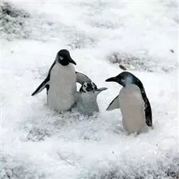 帝企鹅的耐寒能力超强,在零下40度的条件下孵出小企鹅,不是一件容易的事,企鹅蛋不能直接放在地面或冰面上,否则就会把未出世的企鹅宝宝冻坏,于是雄企鹅双脚并拢,用嘴把蛋滚到脚背上,其目的就是不让蛋直接接触地面。然后,充分利用大腹便便的特点,用腹部的皱皮把蛋盖上,真如同一床羽绒被一样,给未来的小宝贝制造出一个温暖舒适的窝。成千上万孵蛋的雄企鹅为了抵挡南极的寒风,保持体温,通常背风而立,肩并肩地排列在一起,一动不动,不吃不喝,一心一意地孵蛋。大约60天之后,雌企鹅吃饱喝足,膘肥体壮,从远方海中回来,在成群结队的企鹅群中能准确地找到它的丈夫,这时候,企鹅宝宝才刚刚出世,雌企鹅从雄企鹅怀中接过企鹅宝宝,担当起养育后代的重任,用它在胃中储存的营养物质喂养企鹅宝宝。这时,骨瘦如柴、精疲力尽的雄企鹅卸下重担后,直奔远方的大海,去海中捕食美味的南极磷虾。