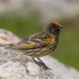 红腰朱雀:体长12-14厘米,小型鸟类。雄鸟前额和眉纹玫瑰粉红色,头顶和一宽的贯眼带深红褐色,背红…