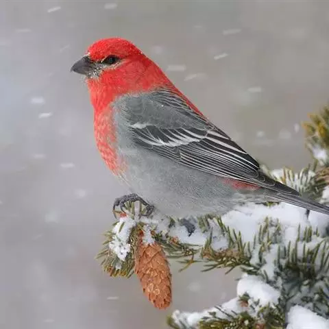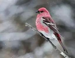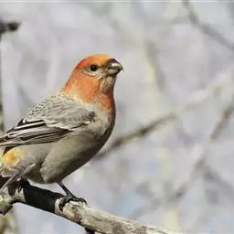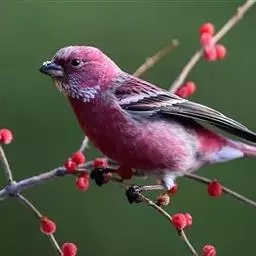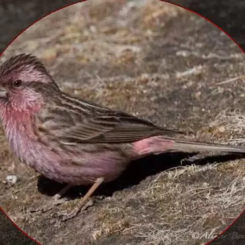 藏朱雀:全长约17-18厘米。雄鸟头部深红色具光辉,喉部暗红色具白色点斑;背部灰白色,各羽具玫瑰红…