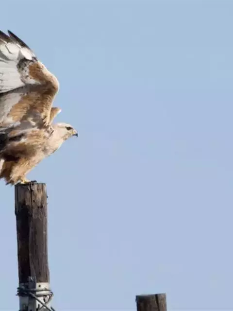 白肩雕:又名御雕,是大型猛禽。体长73-84厘米。体羽黑褐色,头和颈较淡,肩部有明显的白斑,在黑褐…