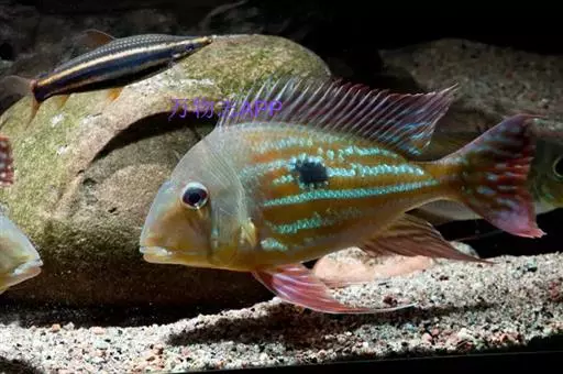 这里介绍一种非洲慈鲷,它的原产地为坦干伊克湖、马拉维湖、维多利亚湖。一般成鱼体长4~26cm全身较高而侧扁,背鳍较高,终至尾柄部。臀鳍终至尾柄部,几乎连接尾鳍。周身色彩艳丽,有金属般的光泽,身体两侧有深色条纹或斑点。