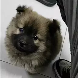 荷兰毛狮犬耳朵小,呈三角形,在头部较高的位置,且竖立;口吻中等长度,既不粗糙也不尖细,…