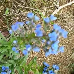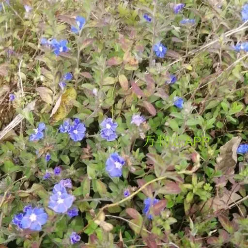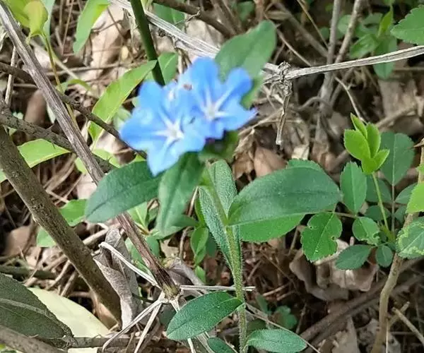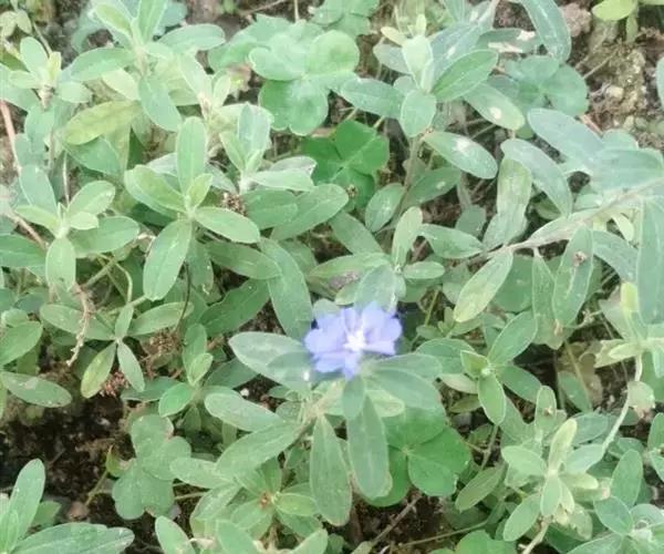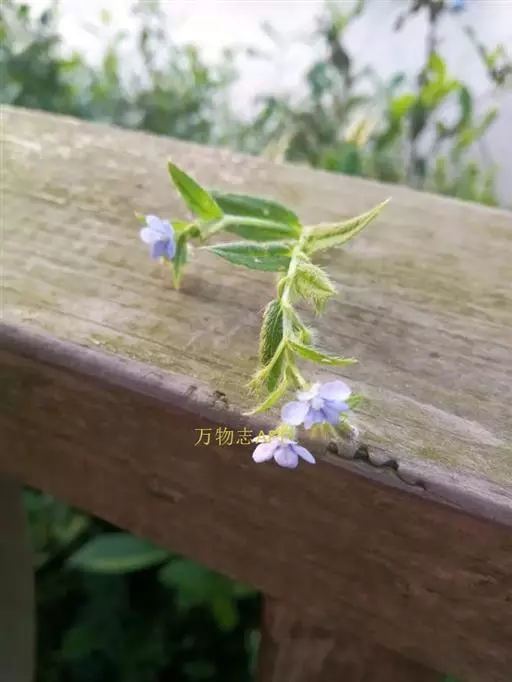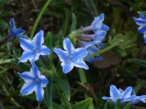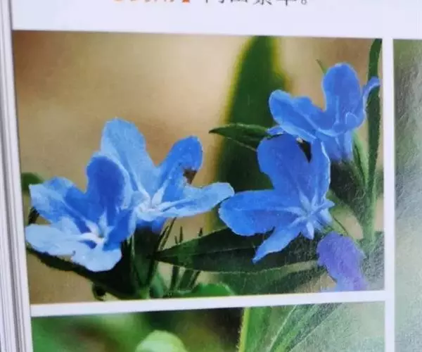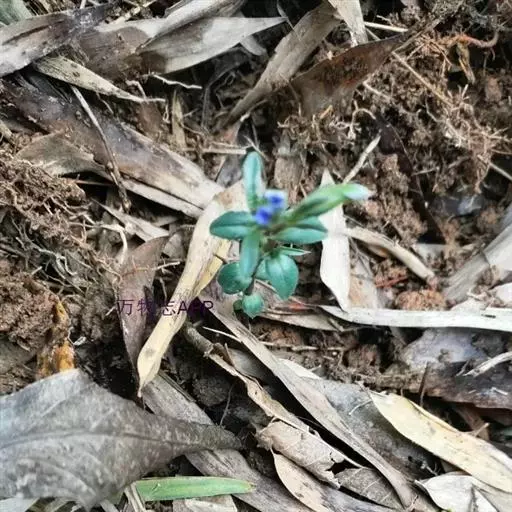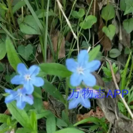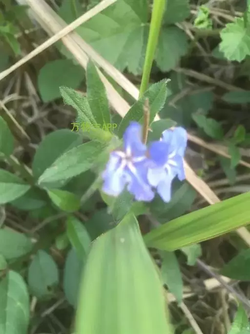 多年生匍匐草本。根褐色,稍含紫色物质。匍匐茎长可达30厘米,有开展的糙伏毛;茎直立,高5-25厘米。基生叶有短柄,叶片倒披针形或匙形,长3-6厘米,宽8-18毫米,两面都有短糙伏毛但下面毛较密;茎生叶与基生叶同形而较小,先端急尖或钝,基部渐狭,近无柄。花序长2-5厘米,有花1至数朵,苞片叶状;花有短花梗;花萼长约6.5毫米,裂片线状披针形,两面都有毛;花冠蓝色或蓝紫色,长1.5-1.8厘米,外面稍有毛,筒部与檐部无明显界限,檐部直径约1厘米,裂片宽倒卵形,近等大,长5-6毫米,全缘,无脉,喉部有5条向筒部延伸的纵褶,纵褶长约4毫米,稍肥厚并有乳头;雄蕊着生纵褶之下,花药长1.5-2毫米;花柱长约4毫米,柱头头状。小坚果斜卵球形,长3-3.5毫米,乳白色而稍带淡黄褐色,平滑,有光泽,腹面中线凹陷呈纵沟。花果期5-8月。