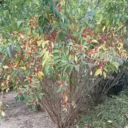 剪枝是在秋季落叶后到春季发芽前进行,一般是旺枝轻剪,弱枝强剪,枝枝都剪,剪枝时要注意新枝长出后要有利通风透光。对细弱枝、枯老枝、基生枝等全部剪掉,对肥水条件差的地块剪枝要重些,株龄老化的剪去老枝,促发新枝。幼龄植株以培养株型为主,要轻剪,山岭地块栽植的一般留4~5个主干枝,平原地块要留1~2个主干枝,主干要剪去顶稍,使其增粗直立。