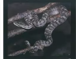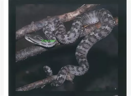 蛇岛蝮 全长可达800毫米。体型粗壮,头略呈三角形,有颊窝,眼后斜向口角有一细窄的黑褐色眉纹,其下缘镶有一极细的灰白色线纹;躯尾背面灰褐色,有一列暗褐色的“X“形斑。躯干中段背鳞23行,腹鳞150~164,尾下鳞32~47对,眶后鳞常为2枚,眶下鳞基本上位于眼下方。