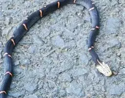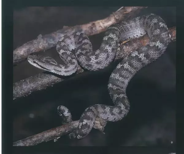 蛇岛蝮体色多以银色、灰色为基调,配合浅黑色的幼条体纹,头部双眼位置有黑色纹带,此类蛇被称为“黑眉蝮蛇”。