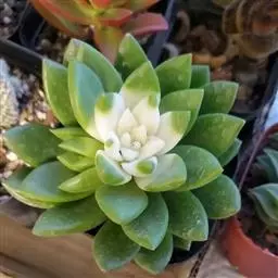 戴冠曲 景天科莲花掌属多肉植物,为亚灌木分枝多,叶片生长在茎端和分枝顶端集和成莲座叶盘,叶片倒卵…