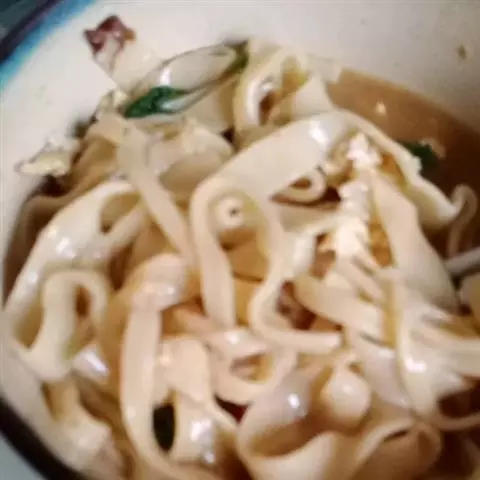 9.把面条煮熟后盛入碗内,淋入汤汁即可。
