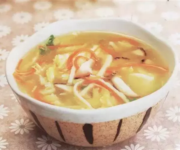 7.倒入鲜汤及黄豆芽、小白菜,煮沸加盐调味;