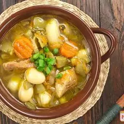 淋入适量的清水,煮至沸腾,加入鸡精、白糖、盐、白胡椒粉、淋入生抽、料酒炖煮约一个小时