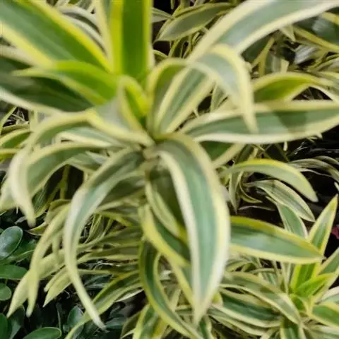 巴西木为常绿乔木,高可达6m以上。叶簇生于茎顶,长40~90cm、宽6~10cm,宽线性,尖稍钝,弯曲成弓形;叶缘呈波状起伏,鲜绿色,平行脉,有光泽,近无叶柄。圆锥花序,花小,簇生,黄绿色,傍晚时分散发芳香。果实橘黄色。